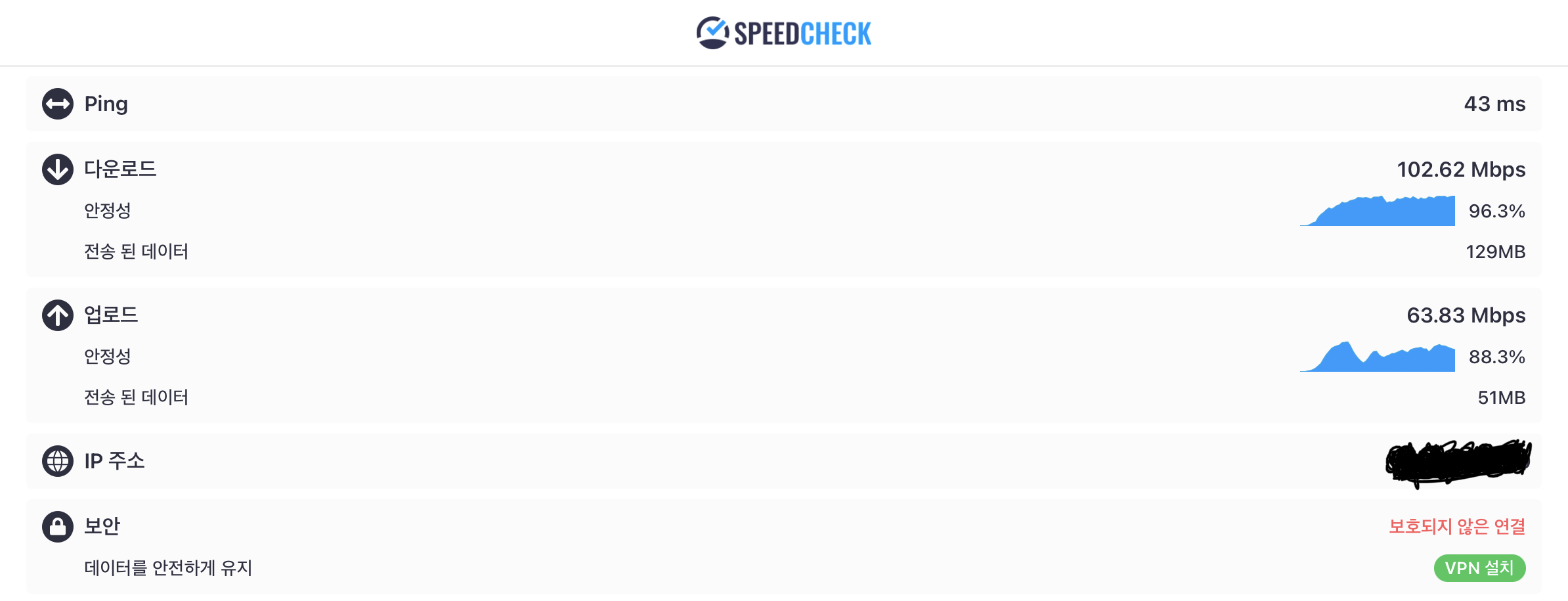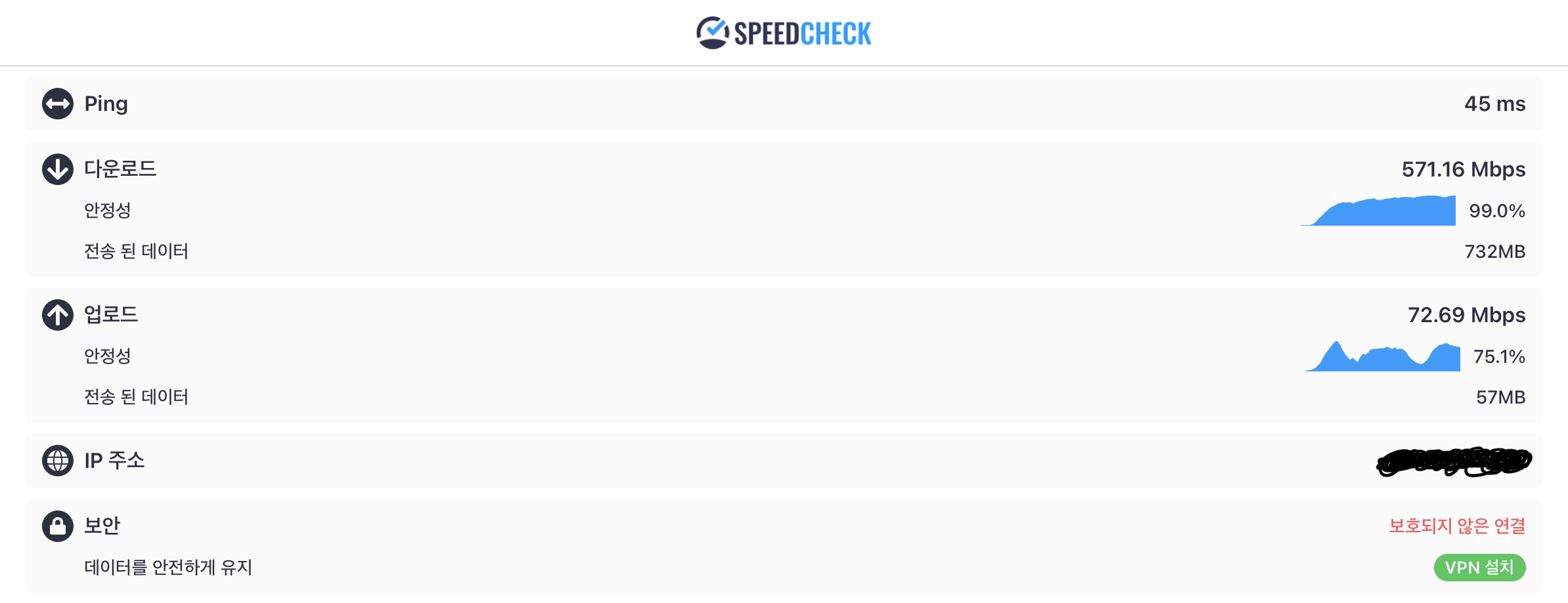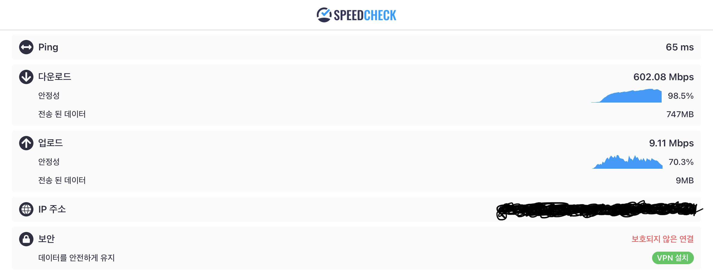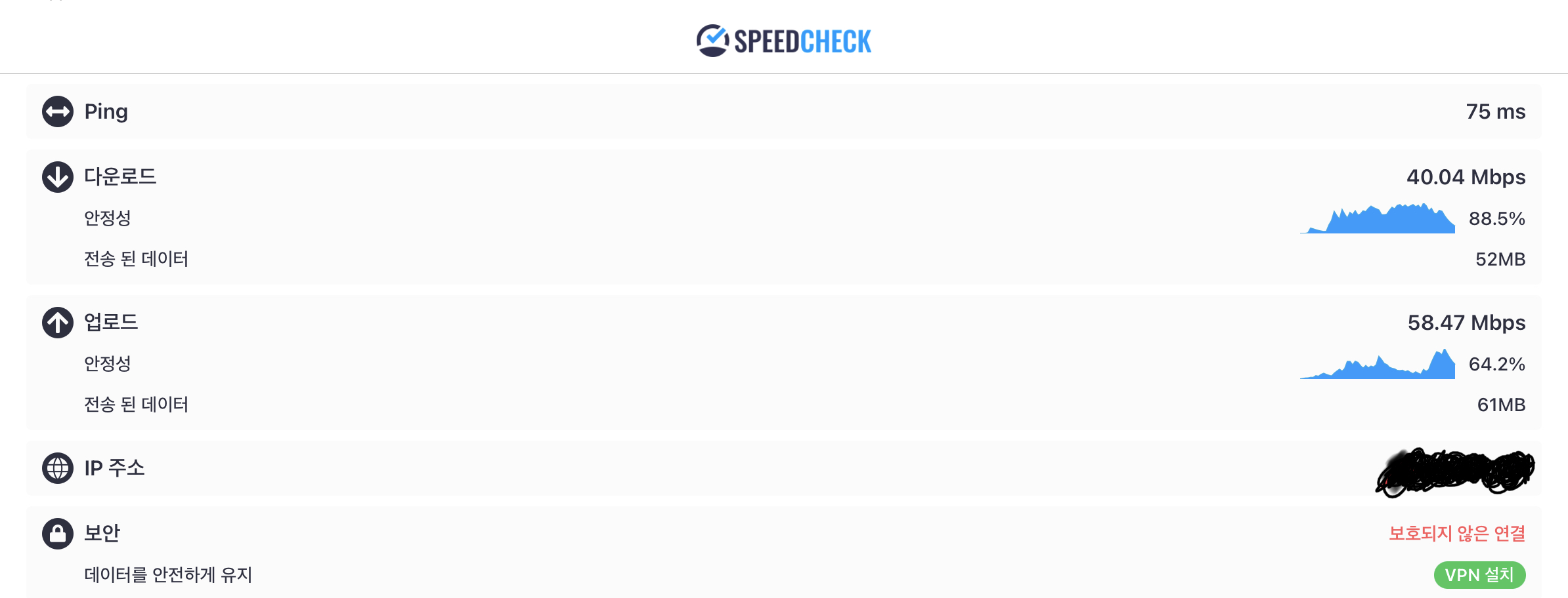 (업 속도가 더 높게 나오는 이유는, 저 공유기에 물린 기기가 많아서 일 겁니다;;;)