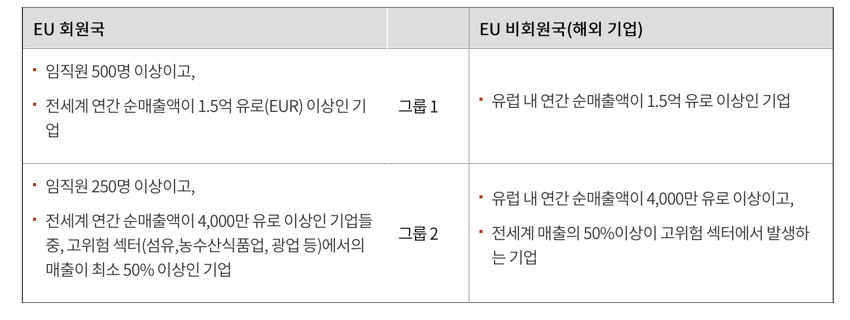 유럽에 매출이 있는 기업은 유럽 영내 또는 영외 기업의 책임을 묻겠다는 법령이다.