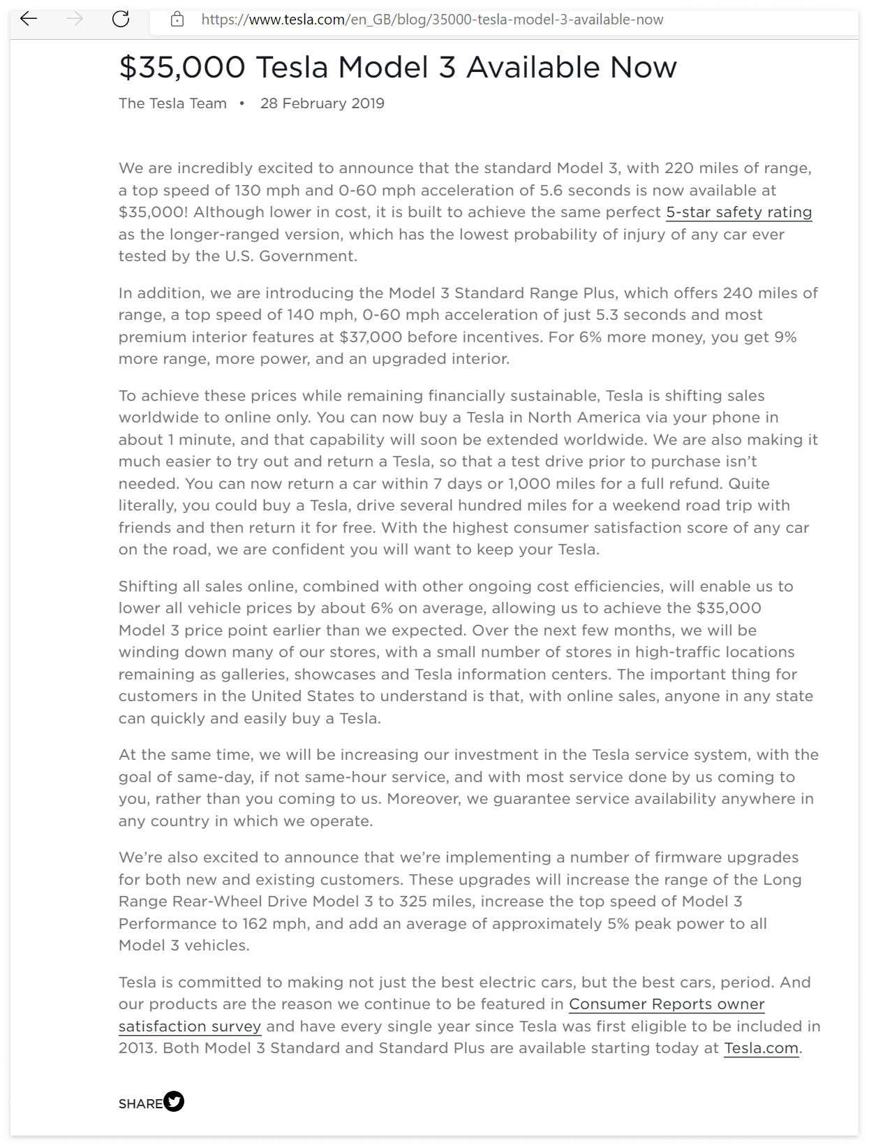 Elon Musk 의 $35,000 Model 3 약속은 2019년에 지켰다고 하지만, 2022년에는 무너진 약속이 되었다.