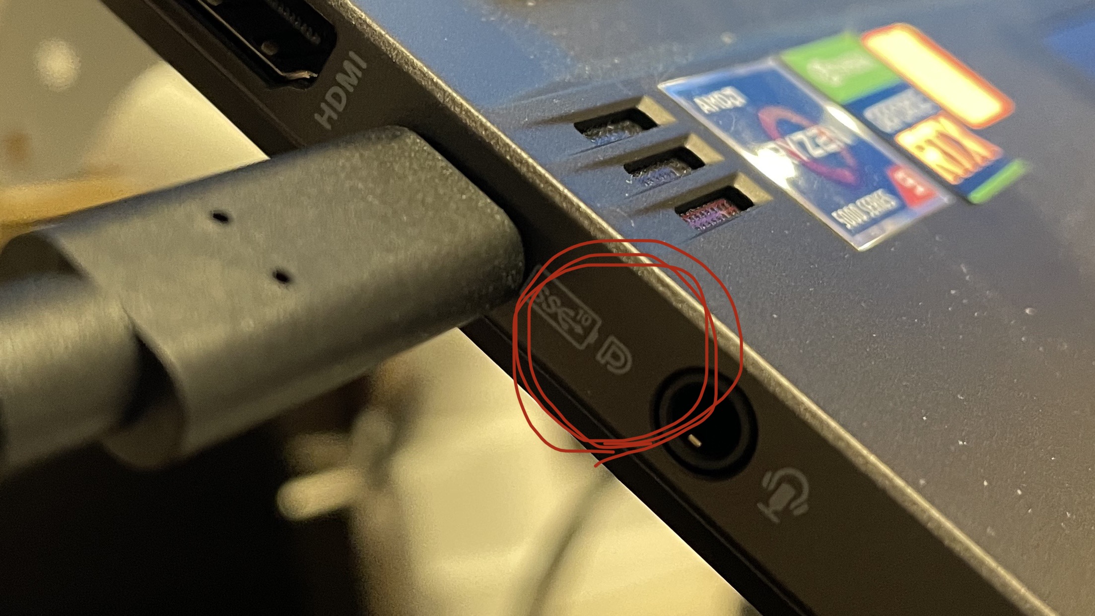내 노트북의 경우에는 저 포트에 배터리 마크가 있어서, 저리로 USB-PD충전도 가능하다. (내 컴은 아쉽게도 Thunderbolt는 지원하지 않는다. RYZEN CPU의 비애- ㅠㅜ;