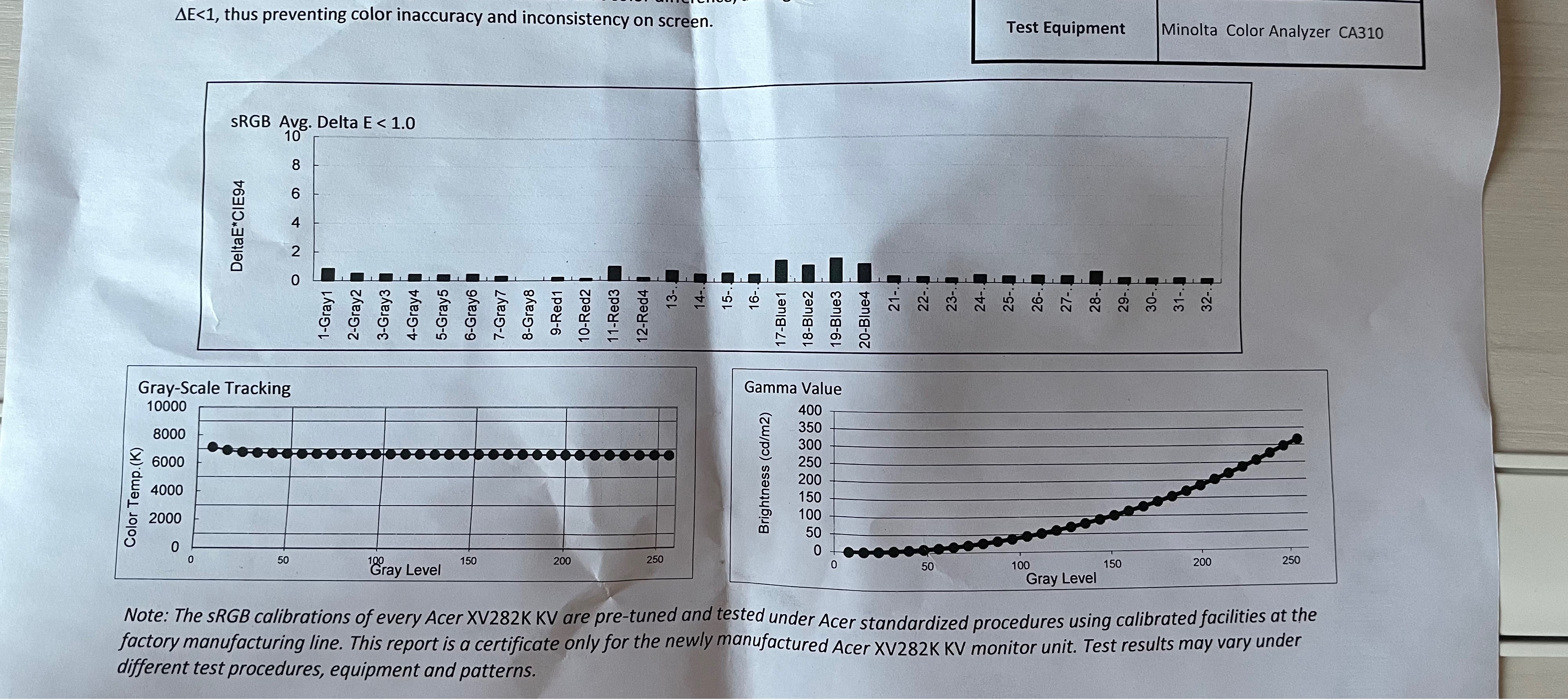 Delta E값, Gray scale, Gamma value그래프를 장비 일련번호마다 측정해서 인쇄 해 놨다- (전수 QC라는 뜻이다. 매우 또라이들 인 듯;;)