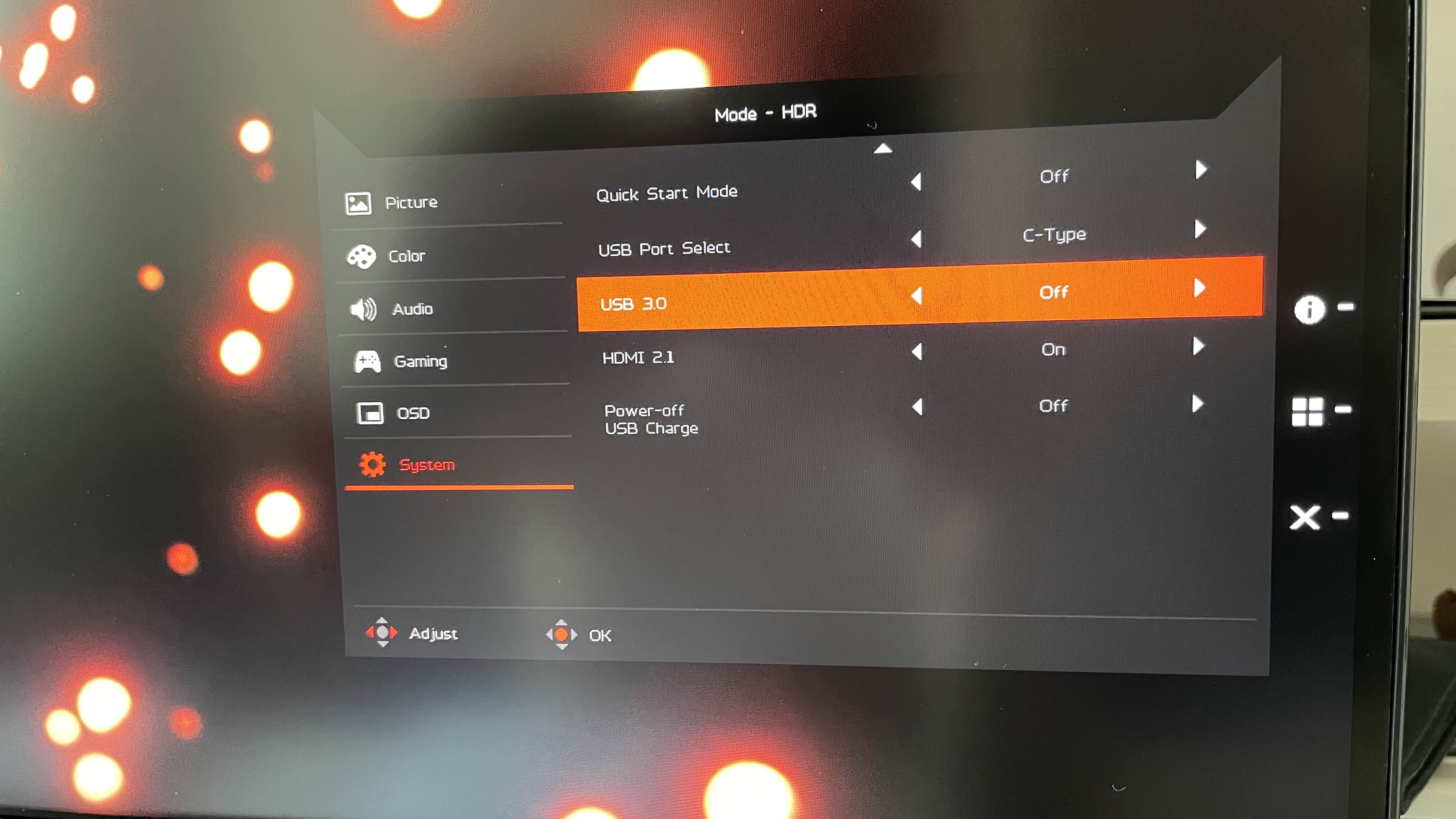 System에서 USB 3.0을 off에서 on으로 바꿔 줘야 한다. 안바꾸면 허브 전체가 동작하지 않는다. 혹시나 USB-C입력 말고, USB-B 3.0을 이용하고 싶은 분들은 USB-port select에서 바꾸면 된다.