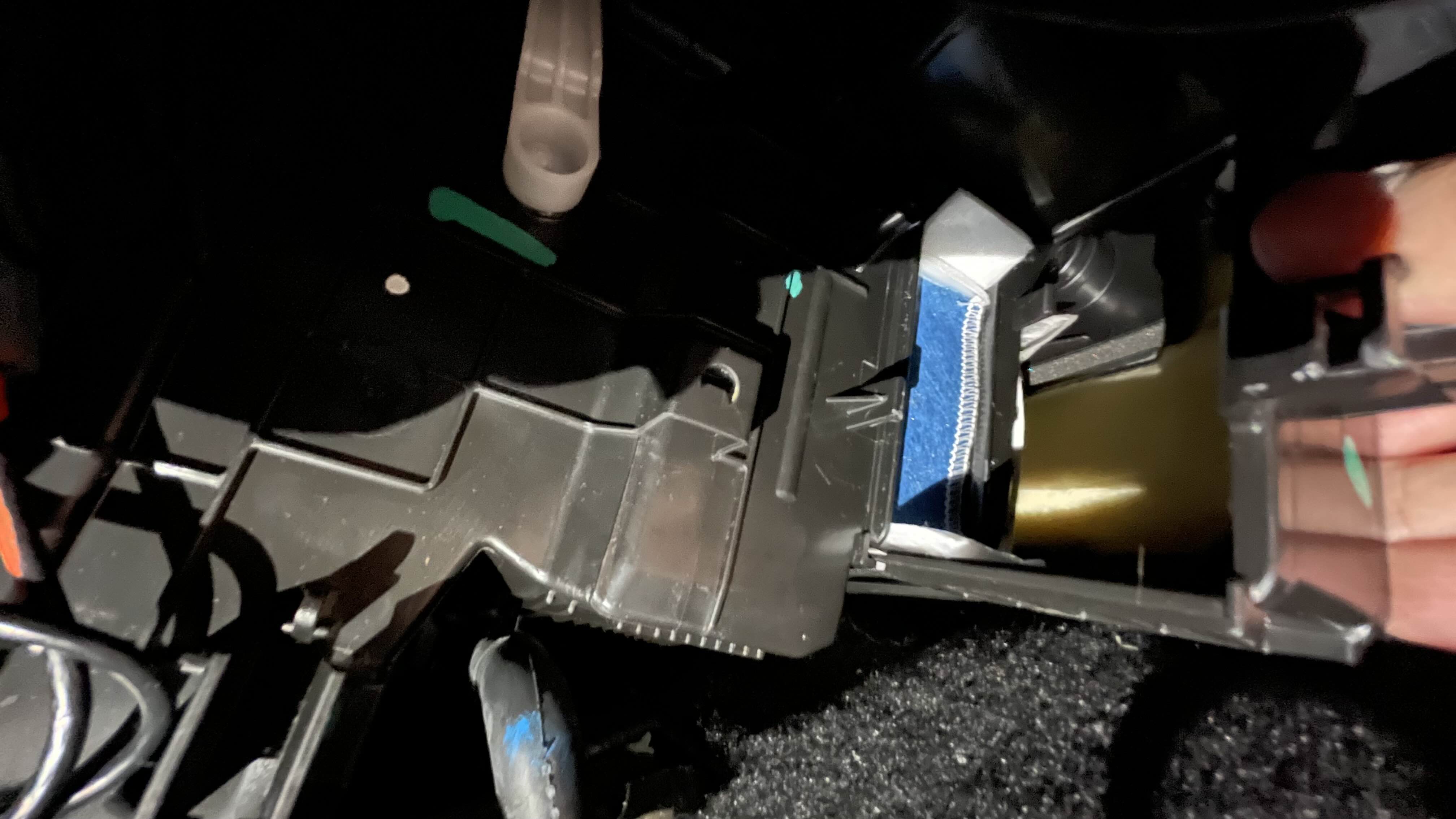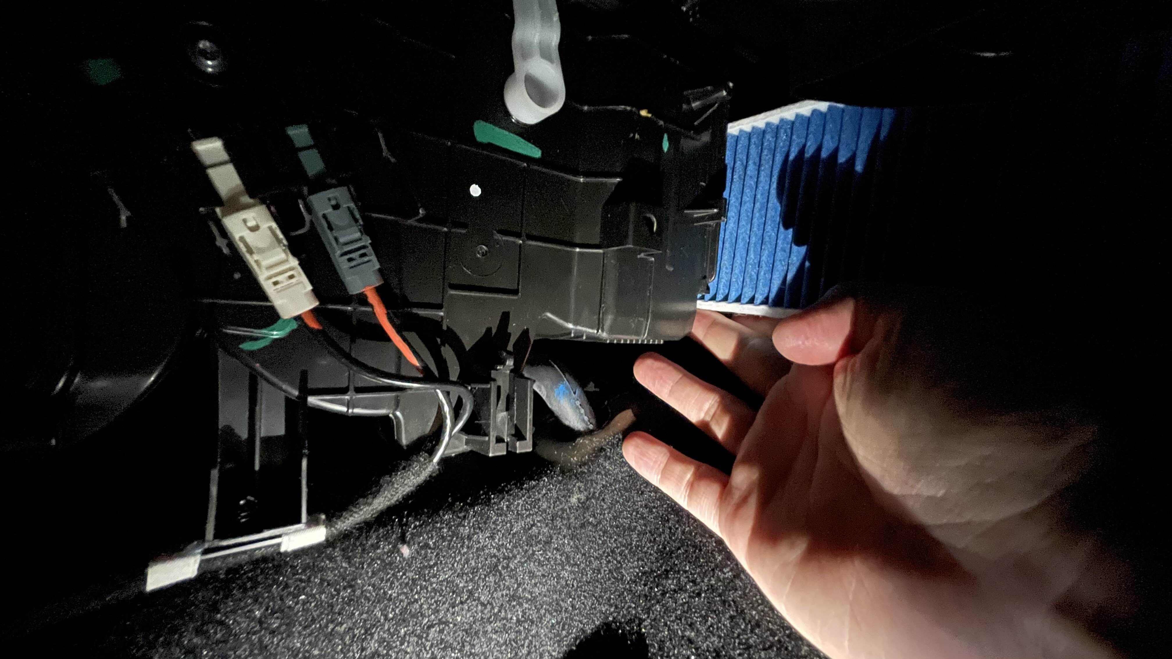 필터의 위치는 조수석 대시보드 하단이다. 첫 난관은, 바로 이것